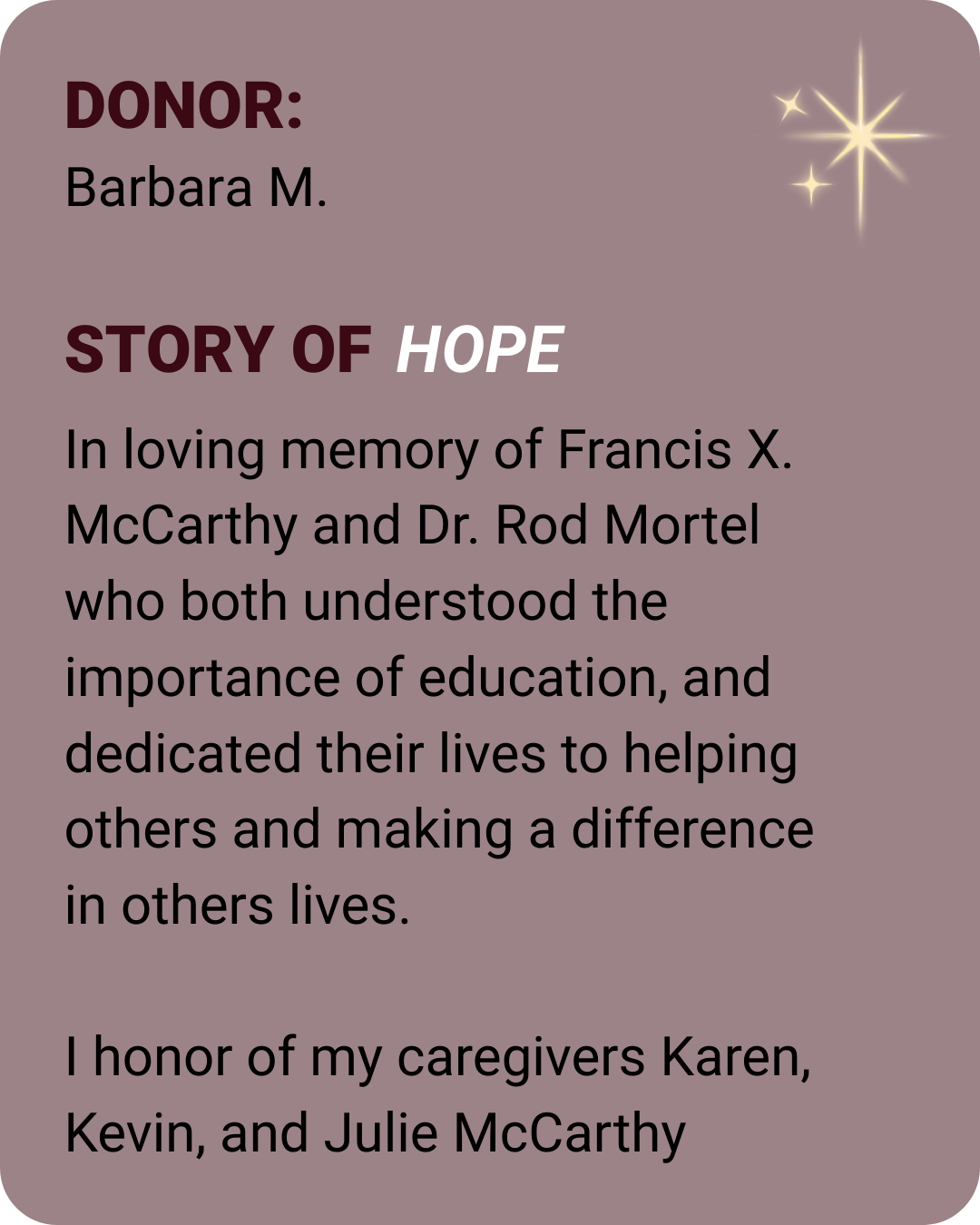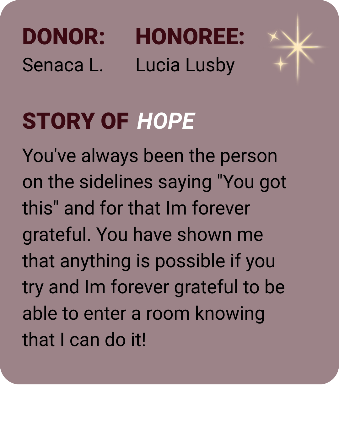 Because when we honor those who inspired us, we fan the flame of hope.